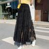 Women's Spring and Summer Lace Skirt A-line Long Skirt Big Hem Gauze Hollow Pleated Skirt