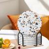 - 【Product】6pcs 4" Round ceramic coasters with holder set is for home, kitchen, living room, bar, hotel, restaurants. You can use the drink coasters on your dining table, coffee table or even for at the office
