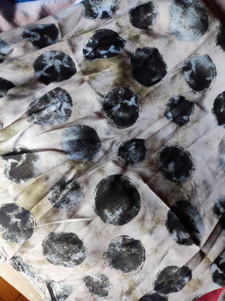 The skirt arrived on time, the size matches. But it's not as bright and glossy as in the photo.... Dull polka dots.... I was disappointed in it..