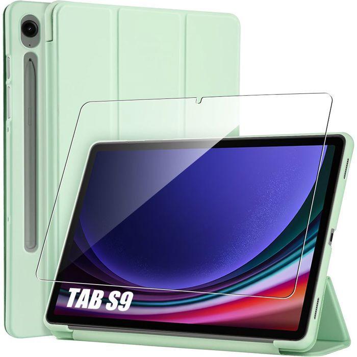 Coque + Verre Trempé -E.F.CONNECTION - pour Samsung Galaxy Tab S9 - Vert - Antichoc - Support Pliable