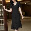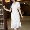 ZANZEA Women Casual Lace Crochet Patchwork Short Sleeve Sheath Dress