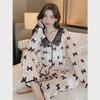 Women's Gold Velvet Pajama Set - Apricot, Long Sleeve, Heart Print