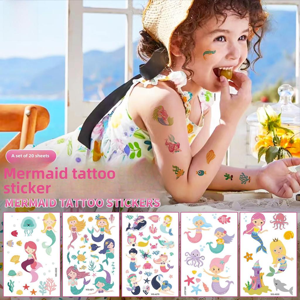 Waterproof Cartoon Princess Tattoo Set - Mermaid Theme for Kids