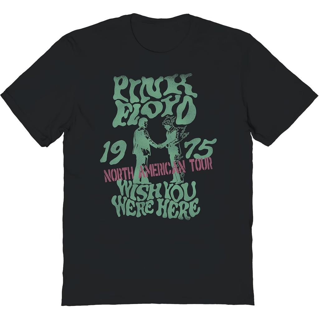 Vintage 1975 Wish You Were Here Graphic T-Shirt Black Rock Tee for Men Casual Music Style Short Sleeve Machine Washable