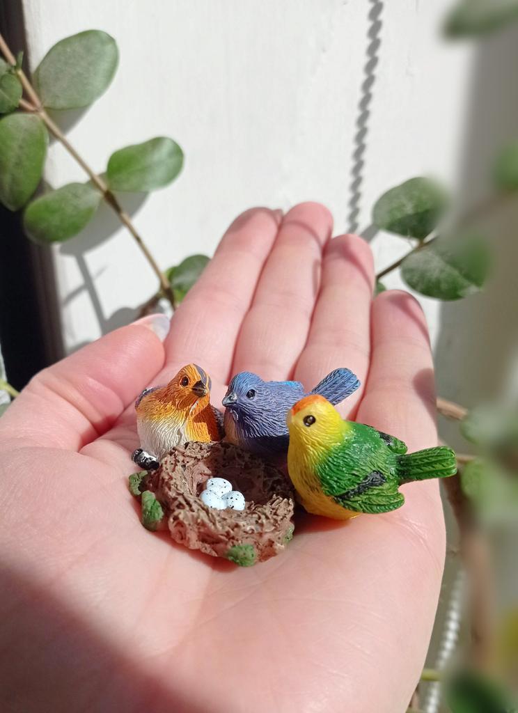 4Pcs/Set Birdie Figurines Micro Landscape Ornaments Bird'S Nest Bird Eggs Mini Gardening Bonsai Simulation Model Dollhouse Decor