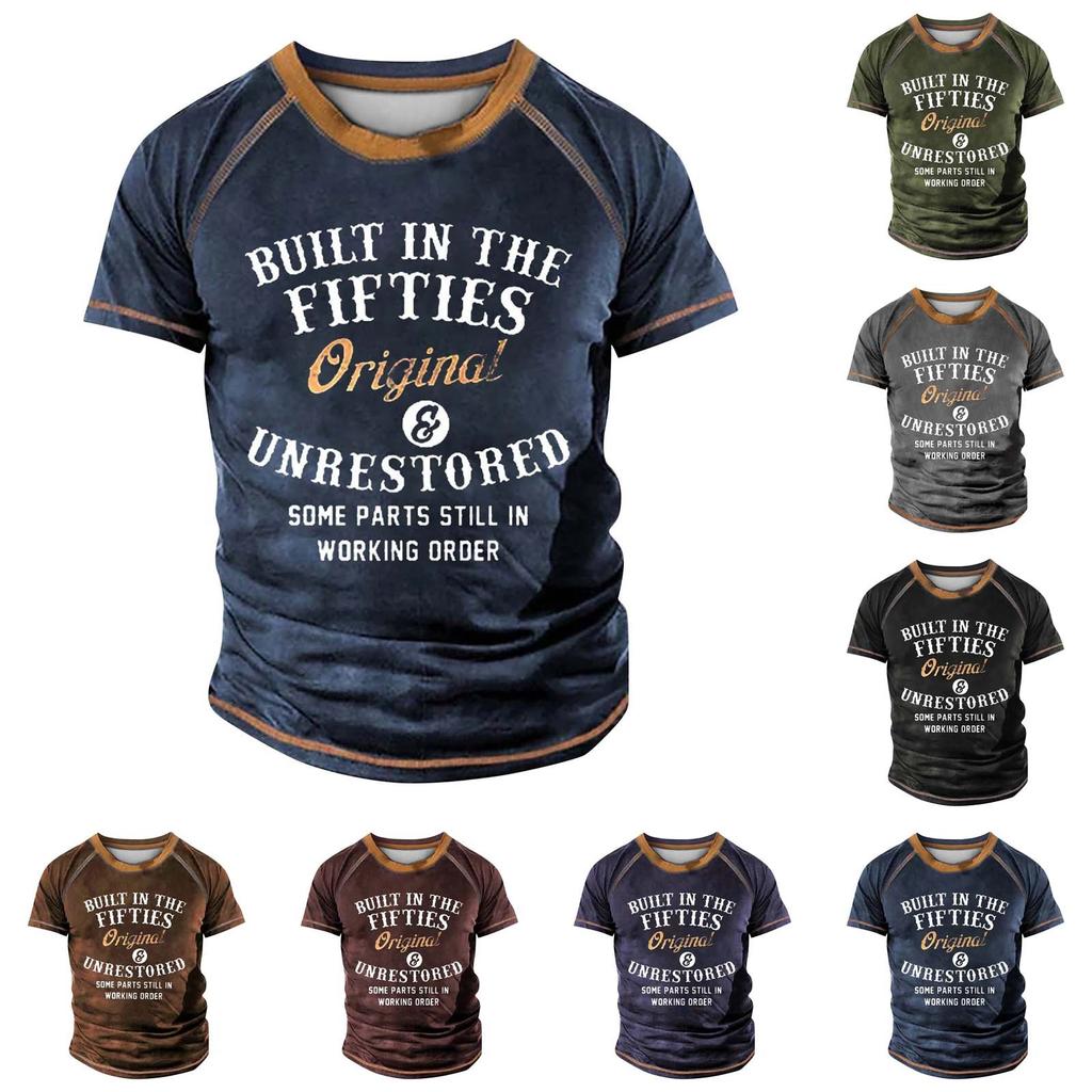Men's Raglan T-shirt Retro Short Sleeve Round Neck Letter Printing Tops