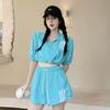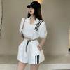 2PCS Female Sports Suit Student Ins Summer Loose Short-sleeved + Casual Striped Shorts Two-piece Set Athletic Clothing Sets Girl's Short Suit