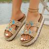 New Thick-soled Hemp Rope Belt Buckle Rhinestone Cork Beach Slippers Fashion Women's Shoes