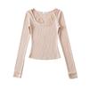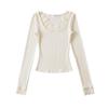 Lace Trim Square Neck Bodycon Long Sleeve Shirt - Women's Spring Collection