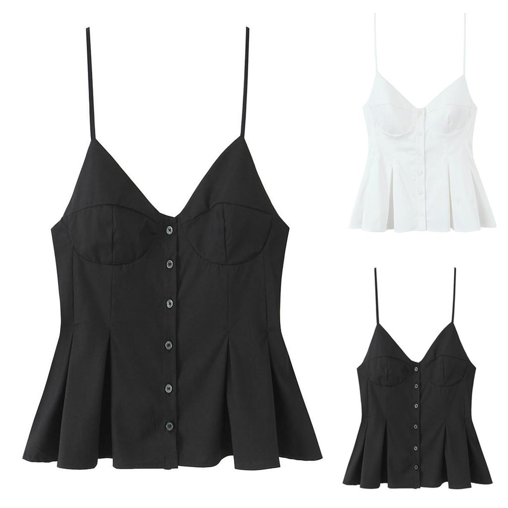 Women's Fashionable Sexy V Neck Solid Color Suspender Button Short Top
