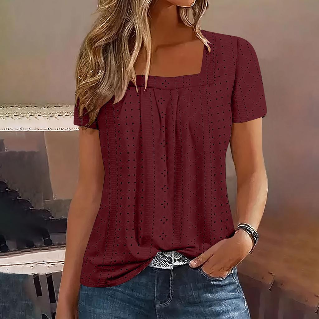 Summer Loose Casual Solid Color Square Neck Short Sleeved Top Versatile Women's T-shirts