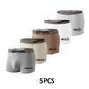 5pcs Ice Silk Men's Underwear Solid Color Printed Plus Size Mid Waist Flat Angle Waistband Boxer Brief