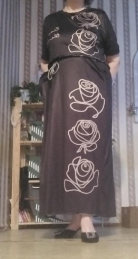 Matching midi skirt with the same elegant white rose pattern for a coordinated look.