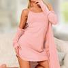 French Sexy Cotton Autumn Camisole Long Sleeved Vest Knitted Set for Women's Home Wear Pajamas Feminino Night Dress
