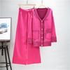 Women's Autumn And Winter Fashion Suit Loose Mid Length Knitted Top Wide Leg Pants Two Piece Set
