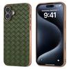 For iPhone 16 Case Woven Texture Electroplating Edge Leather Coated PC+TPU Phone Cover