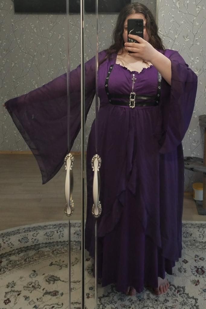 Rosegal Plus Size Cross Zipper PU Strap Buckle Chiffon Textured Flare Sleeves Ruffles A Line Dress