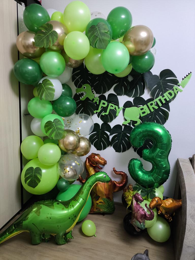 Dinosaur Birthday Scene Decoration for Kids - Balloons and Party Atmosphere Set for Boys and Girls