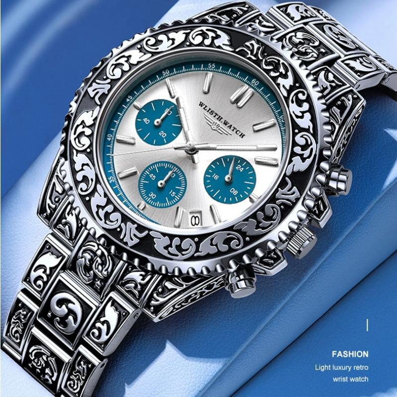 WLISTH Vintage Watch Man Waterproof Luminous Stainless Steel Chronograph Fashion Casual Luxury Mens Calendar Watch