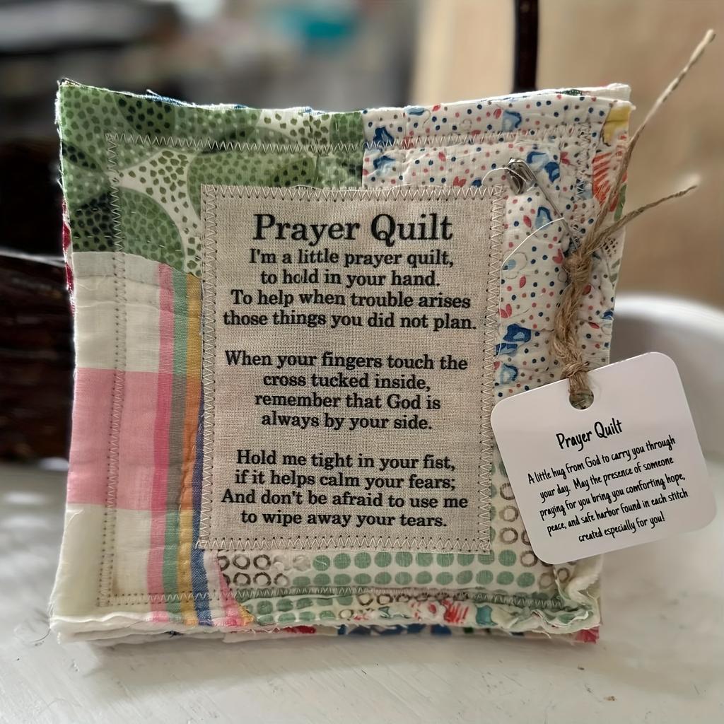 Handmade Pocket Prayer Quilt with Wooden Cross - Colorful Fabrics, Vintage Style, Symbolic Psalm Design, Comfortable and Supportive
