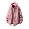 Men's Solid Color Hooded PU Leather Fake Two-piece Vintage Distressed Fabric Metal Decoration Jacket