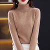 Turtleneck Cashmere Sweater for Women's Spring Autumn and Winter Casual Long-sleeved Pullover Solid-color Knitted Sweater and Slim Lapel Top