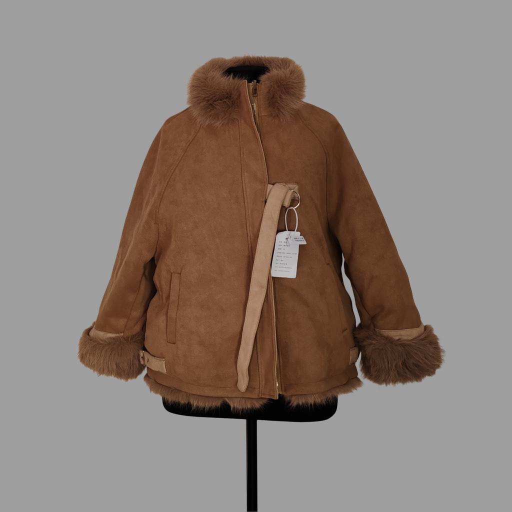 Winter Jacket Outerwear Women Long Warm Suede Parka Coat Patchwork Long Sleeve
