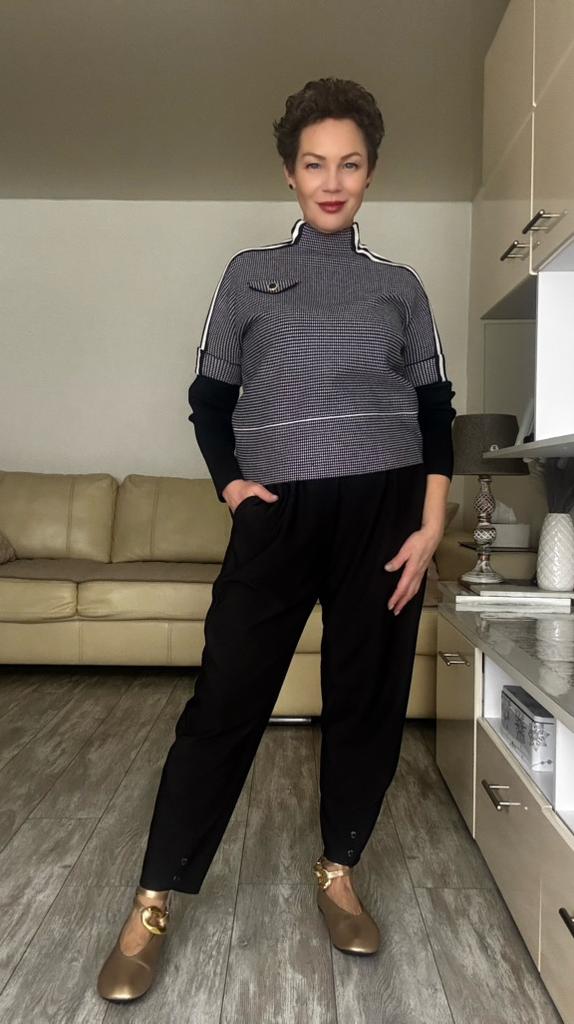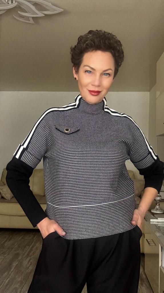 Women Casual Knit Short Jacket Autumn Plaid Versatile Layering Top Fake Two Piece Outerwear