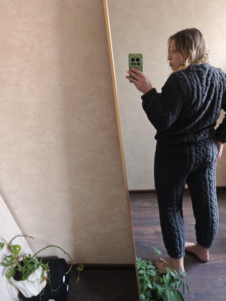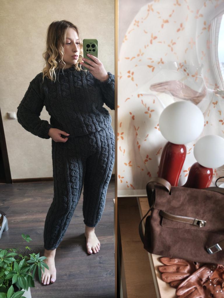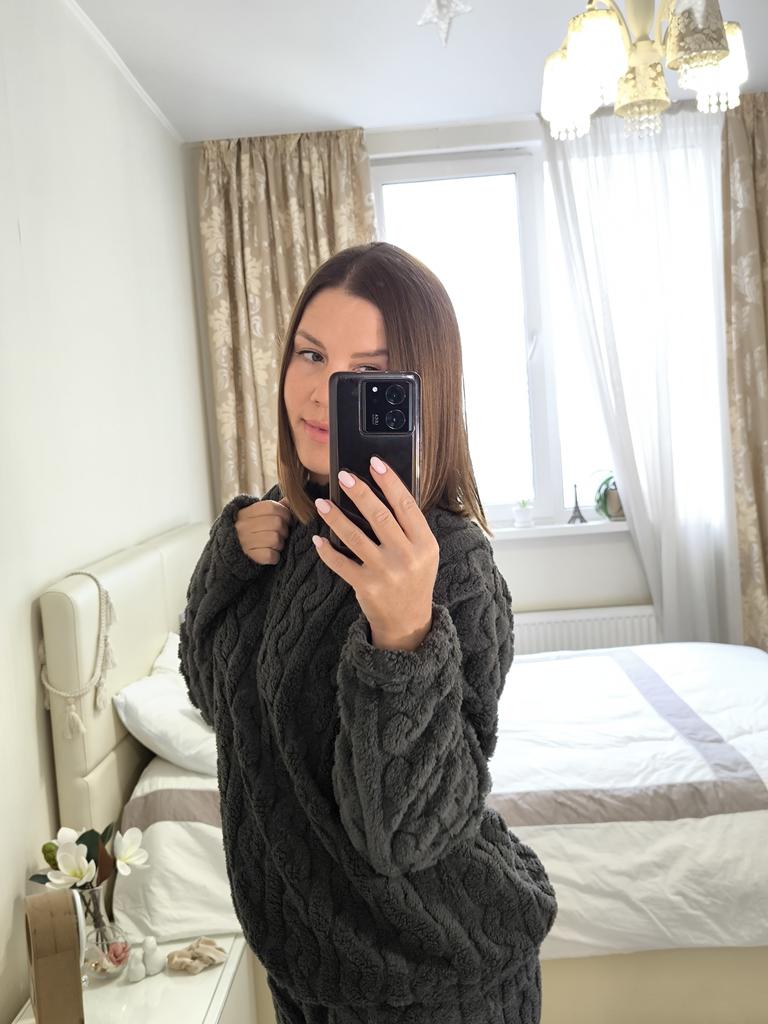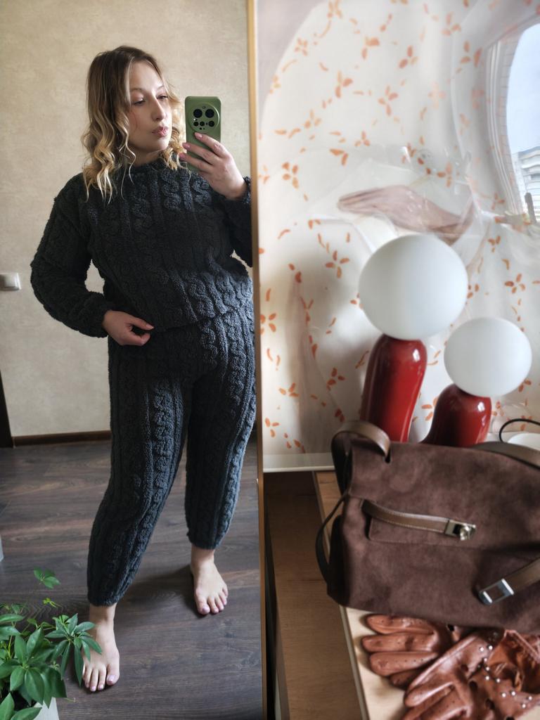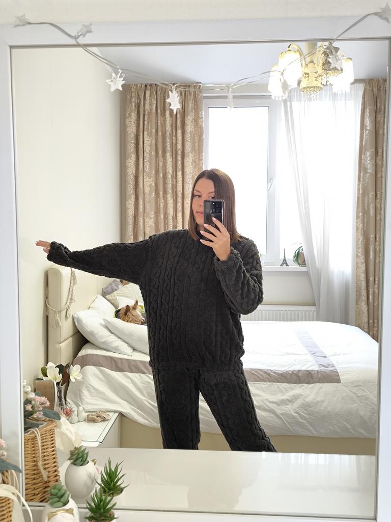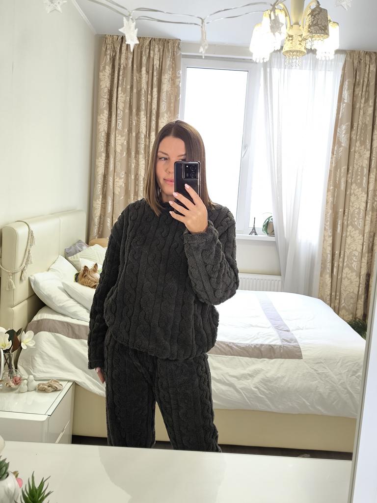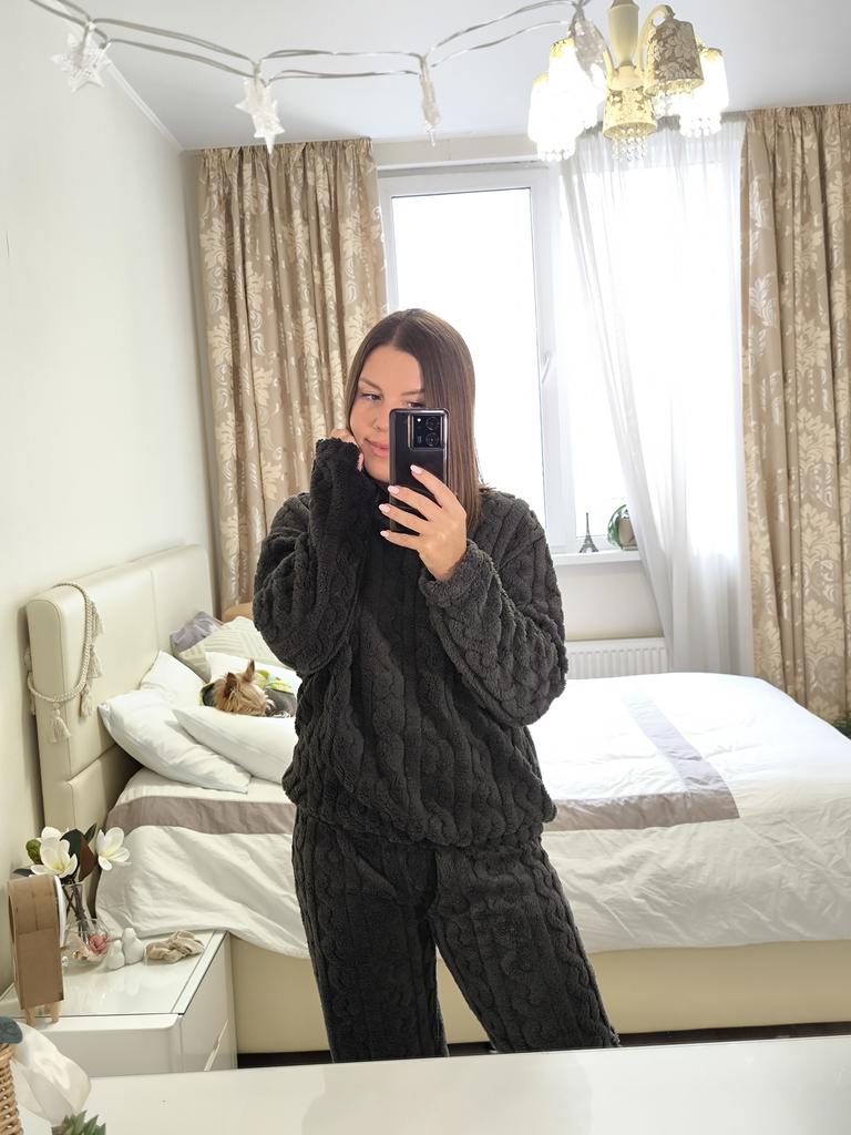 A perfect set for winter – both cozy and flattering! ❄️ I bought this set for the cold season and I'm simply in love! The fabric is soft and pleasant, velvety and warm just as it should be for the cold days of autumn and winter. The sweater flatters the body, fits well without being too tight, and the shirt together with the pants create an elegant but also super comfortable look.. The feminine cut and high waist of the pants give a feeling of perfect fit to the body. I didn't expect a pajama set to look so good – you can easily go out with it to the grocery store or even for a light outing.. The material is high quality, the color stays even after washes, and the touch remains soft. In short – worth every shekel! Highly recommend to anyone looking for comfort with chic.
