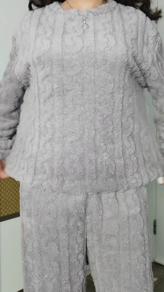 Autumn Women Solid Warm 2 Piece Sets Thicken Velvet Ribbed Fleece Set Pullover and Pants Women Casual Pajama Sets