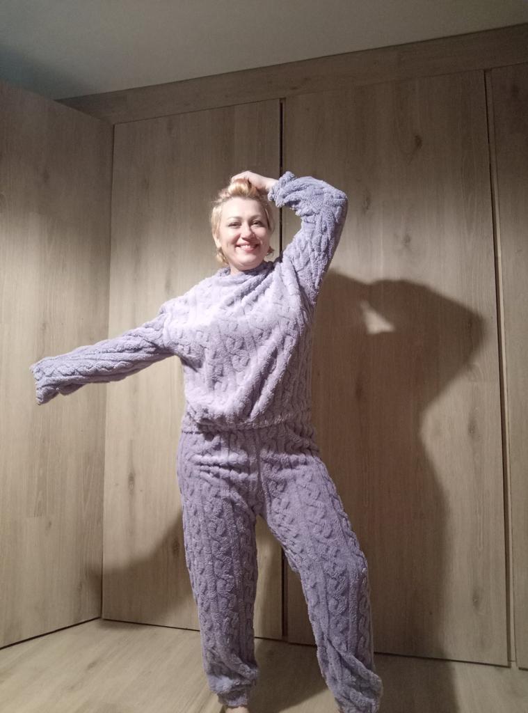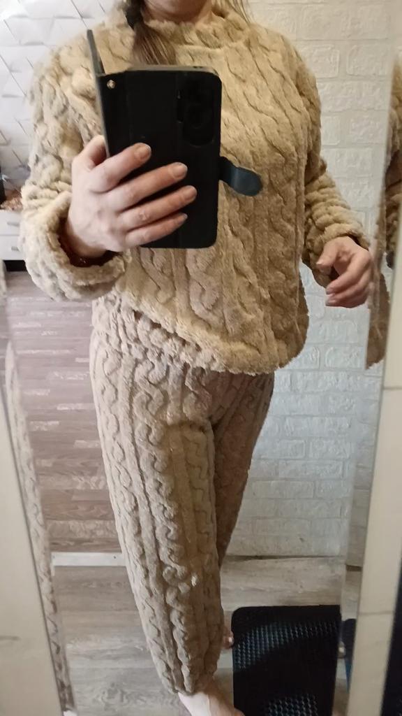 Warm cozy pajamas. Pajamas come in one size and 6 colors to choose from. For the parameters: 164 cm 90 - 78 - 95 it fit well. The fabric is soft, voluminous, the pajamas are warm. sewn neatly. Elastic band at the bottom of the jacket, at the bottom of the sleeve and at the bottom of the trousers. Pajamas are suitable not only for sleep, but also an excellent option for home.. Color bright saturated. Definitely recommend to buy 💯