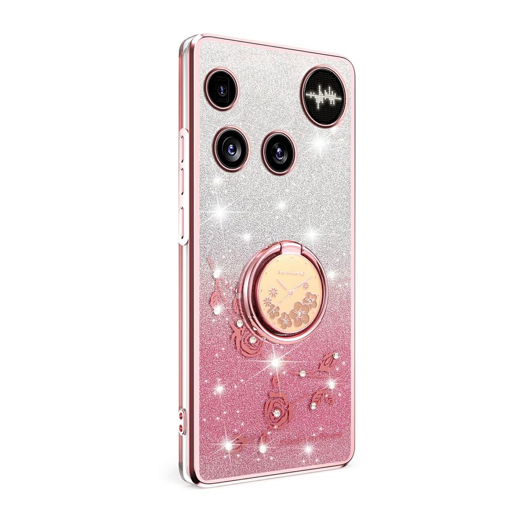 For Nothing Phone (3) 5G Case Ring Kickstand TPU Flowers Phone Cover Gradient Glitter