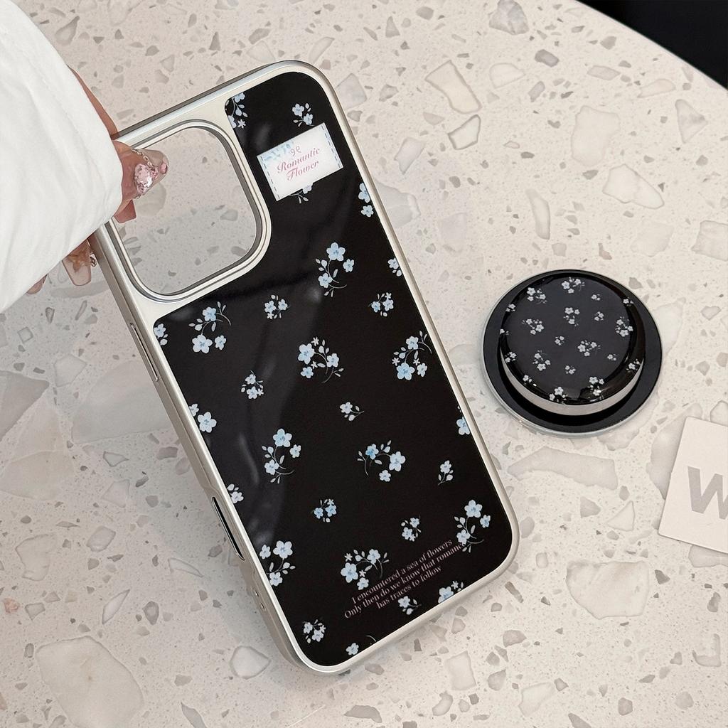 Magnetic Black and Blue Flower Stand Suitable for Apple 16pro Max Mobile Phone Case Iphone15 Acrylic 13 Huawei P70