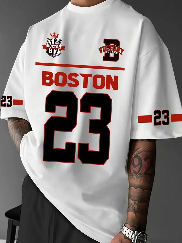 Men's "23" Boston Print Tee T-Shirt Short Sleeve Sports Women's T-shirt Unisex Casual Daily Wear Summer Men's Racing T-shirt