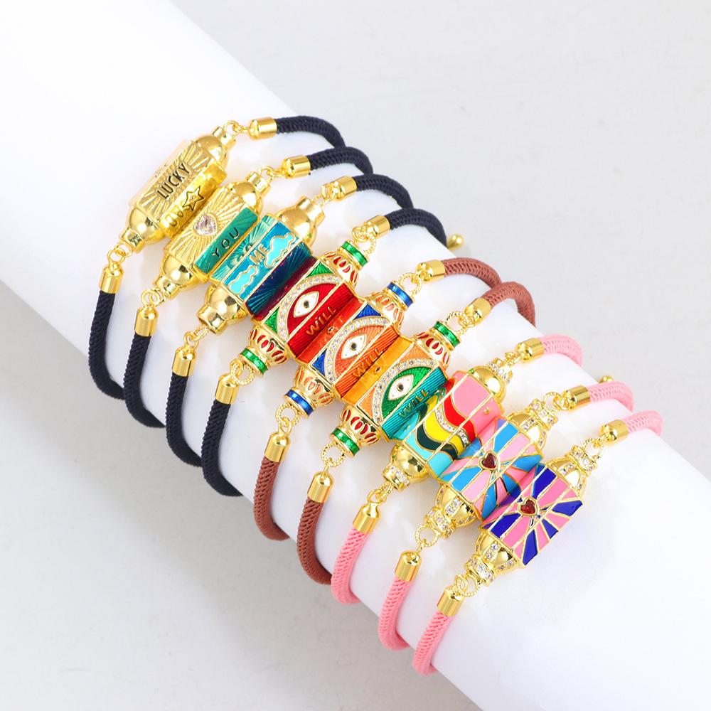 JMXD Punk Vintage Bracelet with Micro-inlaid Zircon Candy Hexagon Enamel Evil Eye Letter Colorful Trendy Fashion Stylish Unisex Jewelry