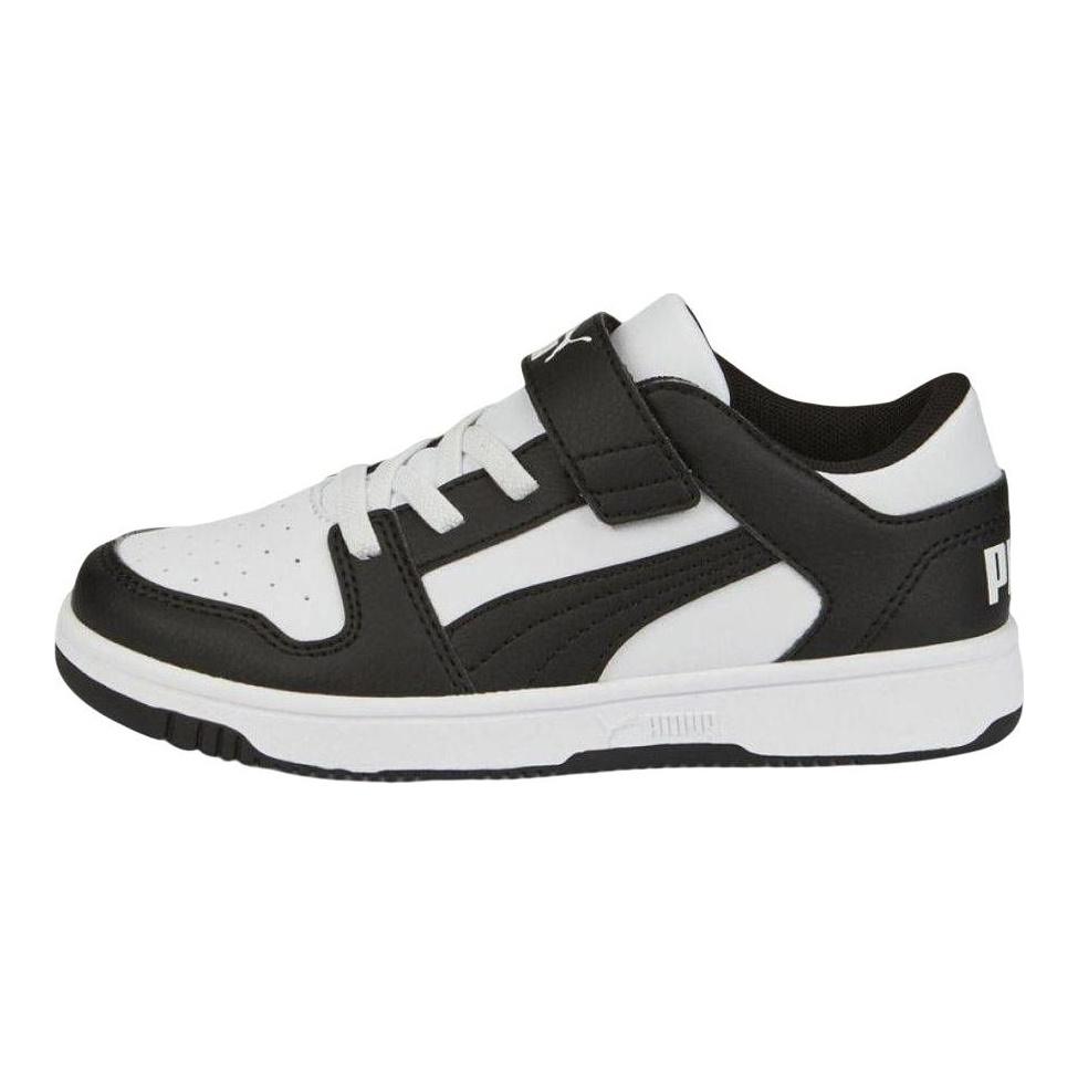 Puma Rebound Layup Lo Velcro Durable Anti-Kick Low-Top Skate Shoes Kids Sneakers Black White 370492-16