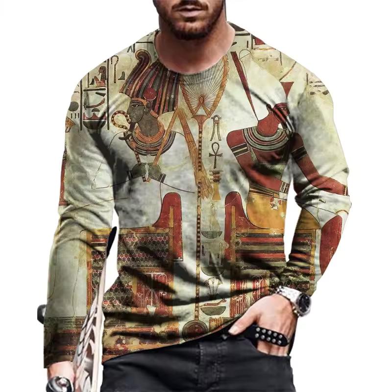 Egyptian Hieroglyphs T-Shirts 3D Printed Men's Woman Vintage Long Sleeve T Shirt Oversized Pullovers Kids Tees Tops Clothing