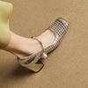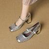 Fashion French Woven Hollowed Out Single Shoes Summer Breathable Square Toe High Heel Pumps PU Leather Mary Jane Shoes Zapatos De Mujer