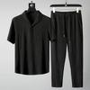 Discover the ideal blend of style and comfort with this men's summer suit, crafted from breathable polyester with a chemical fiber blend. This lightweight two-piece ensemble features a fashionable lapel design and short sleeves, making it perfect for warm-weather occasions. The pleated trousers add a touch of sophistication while ensuring a relaxed fit. Whether for a casual outing or a more formal event, this suit will keep you looking sharp and feeling comfortable all day long.