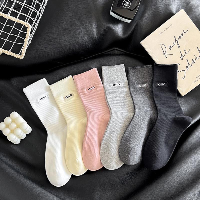 Women's Fall New Solid Color Embroidery Letter Boneless Tube Pile Socks