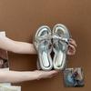 French Thick-bottomed Cool Slippers Women's Summer Outer Wear Advanced Sense 2025 Popular New Summer Beautiful Rhinestone Wedge Slippers