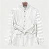 INCERUN Oversized Men High Neck Long Sleeve Twisted Striped Print Casual Loose Shirts