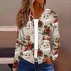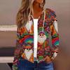 Women's Fashion Christmas Print Casual Zip-Up Long-Sleeved Hooded Jacket