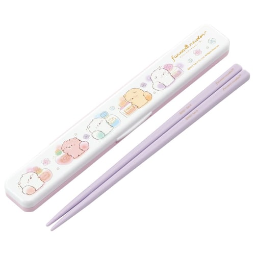 Skater Chopsticks and Chopstick Case Set, 18cm, Silver Ion Ag+ Antibacterial, Fluffy Cat Design, Made In Japan, ABC3AG-A