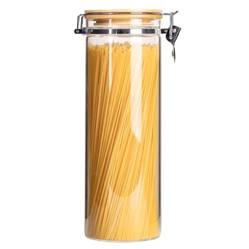 KKC Pasta Storage Container, Glass Pasta Case, Airtight Pasta Canister, Pasta and Noodle Storage Container with Glass and Bamboo Lid, 2000ml