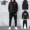 Men's Tracksuit New Autumn and Winter Solid Color Printed Hoodie + Vest + Pants Three-piece Set Couple Casual Sportswear