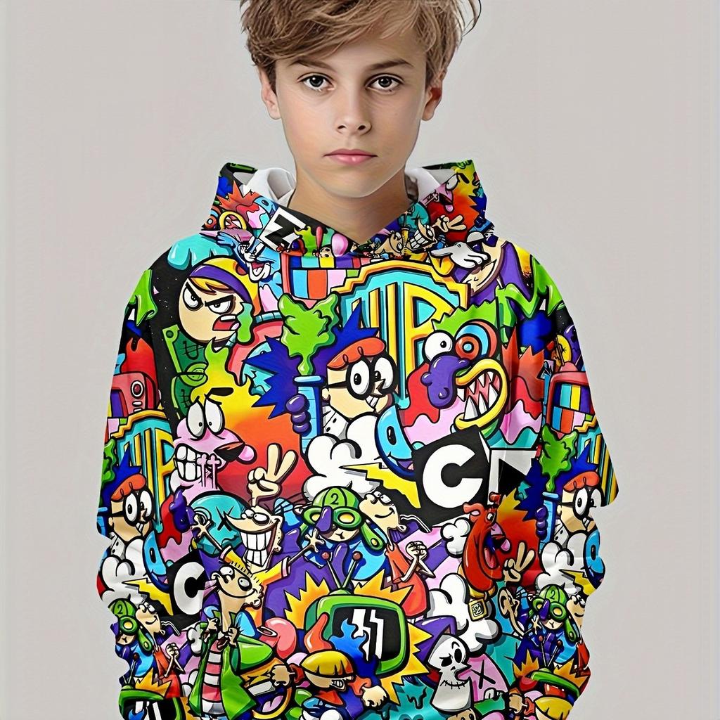 Boys' Fashionable 3D Printed Casual Pullover, Spring and Autumn Long Sleeved Sportswear, Boys' Outdoor Hoodie Top