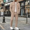 Men's Double Pocket Lapel Jacket Casual Sports Long Sleeve Jacket Pants Set