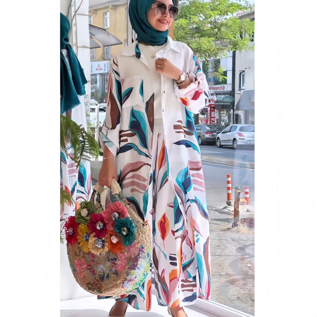 Embrace timeless elegance with this Women's Print Long Cardigan & Wide-Leg Pants Two-Piece Set, inspired by Middle Eastern fashion for 2024. Crafted from a luxurious blend of cotton and linen, this casual ensemble promises both comfort and style. The long cardigan features intricate prints that add a touch of sophistication, while the wide-leg pants offer a relaxed fit, perfect for any occasion. Ideal for those who appreciate a blend of cultural influences and modern design, this set is a versatile addition to any wardrobe.