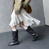 2025 New Leather Retro Belt Buckle Tube Boots Western Cowboy Boots Thick-soled Tall Knight Boots.